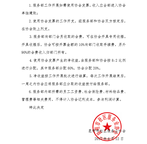 昆社协【2017】04号昆明市社区服务业协会关于成立协会 “现代生活服务部”的决定